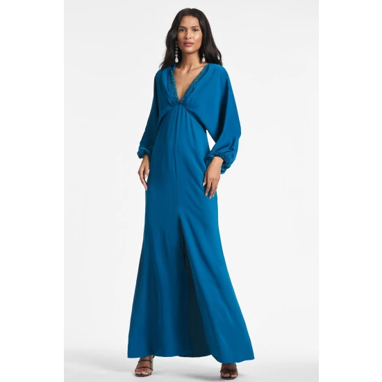 Looking for something chic? A dress that elongates like a column but glides over the body in an a-line, this dress is effortless. There is a bit of 40’s era glamour that never leaves the fashion lexicon. Let us not for get the tonal glittering trim that traces the plunging V.Sachin and Babi believe in celebrating every day, dressing with joy and creating clothes that inspire beauty and confidence. Here’s to the moments make and the moments that make us. Cheers!
